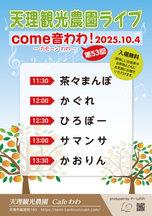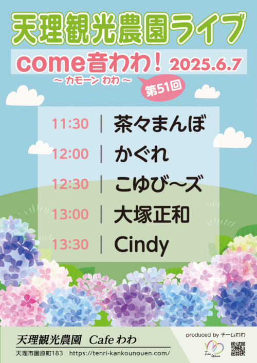 開催終了 come音わわ〜カモーンわわ〜vol.51 in 天理観光農園(2025.6.7)